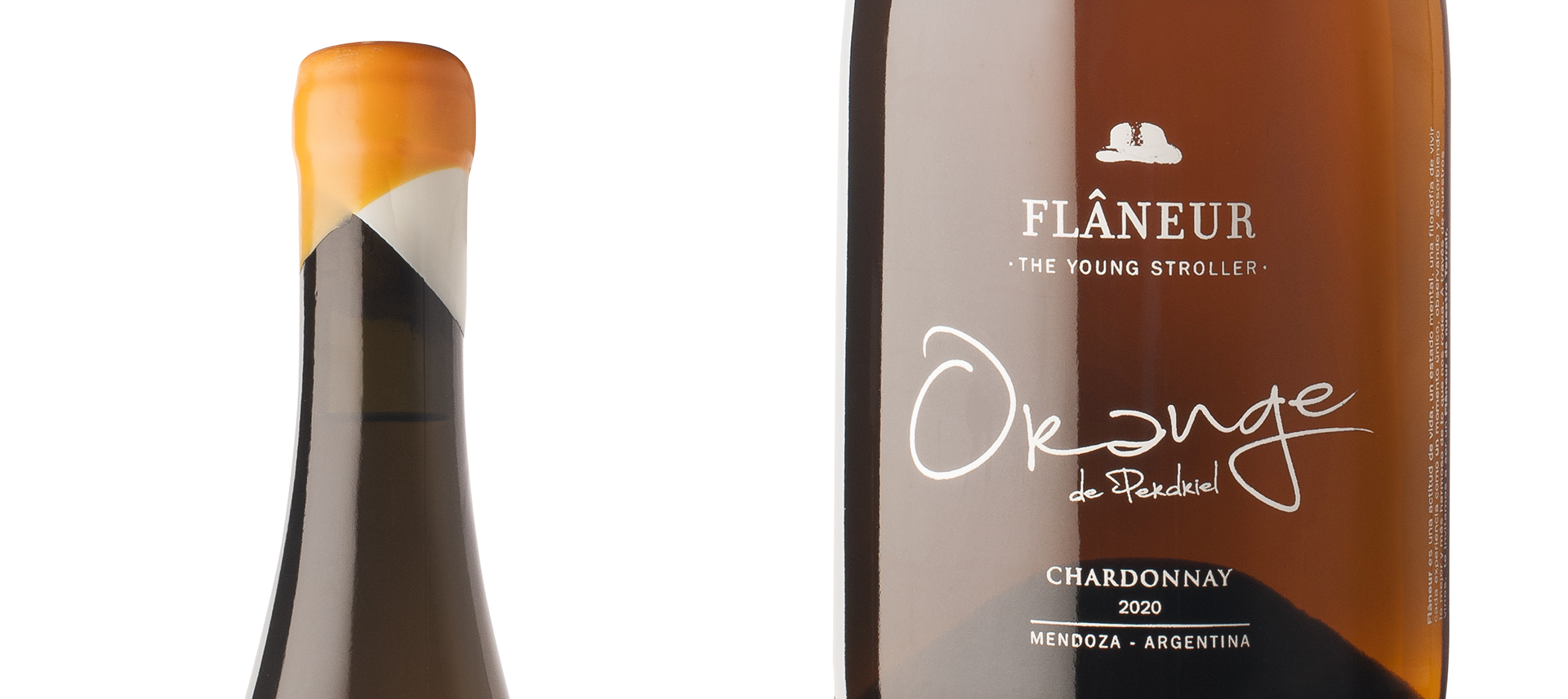 Diseñamos la etiqueta del Flâneur Orange, el nuevo vino de la línea The Young Stroller; creado con uvas Chardonnay y macerado por varios meses sobre sus pieles.